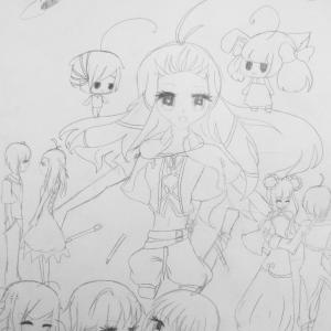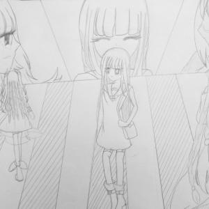 2014-2015学年度第二学期,第7-8周,原佳仪同学根据身边同学、朋友创作的以小女孩为主要表现对象的动漫线稿。