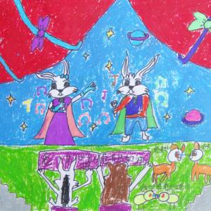 暑假第2周,圆梦画室初级班学生创作的以动物为主要描绘对象的儿童画作品。