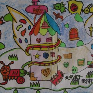 圆梦画室初级班2015-2016学年度第9-10周房屋建筑儿童画作品