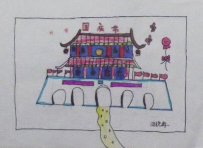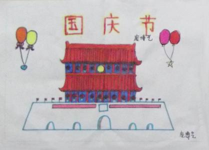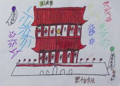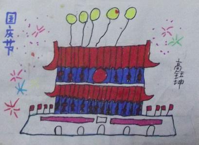 圆梦画室寒假班的学生以彩笔为主,蜡笔为辅,临摹或创作完成的以国庆节时的天安门为主题的儿童画作品。