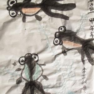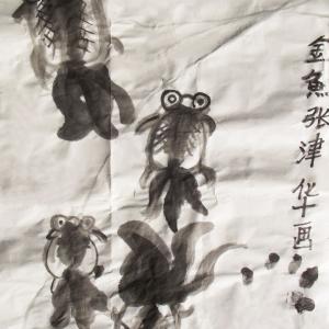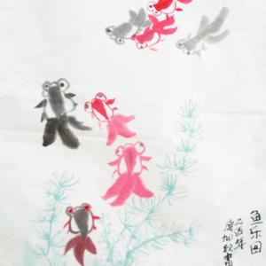 2014-2015学年度,第二学期,第7、8周中级班学生以树木和金鱼为主题,创作的写意画作品。