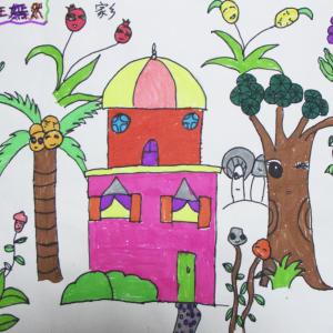 圆梦画室初级班2014-2015学年度暑假第1周花草树木、房屋建筑、羽毛家族等主题的彩笔画作品