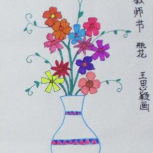 教师节瓶花儿童画