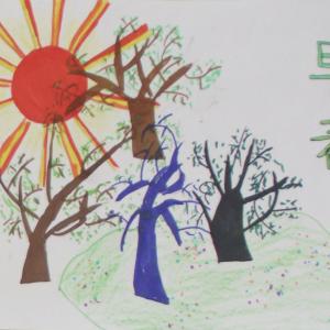 圆梦画室寒假班的学生以彩笔为主,蜡笔为辅,创作完成的以春天为主题的儿童画作品。