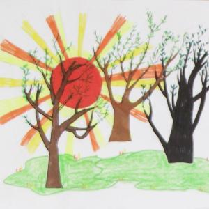 春天彩笔蜡笔儿童画