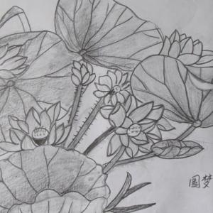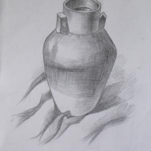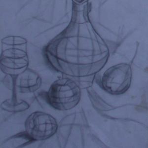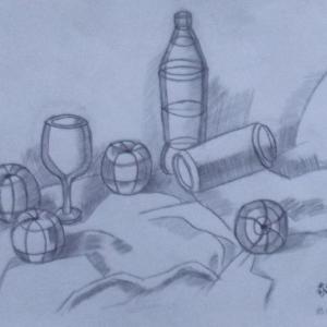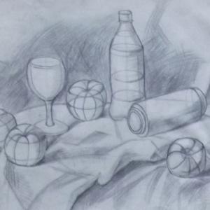 这里有石膏几何,水果瓢盆,莲花池塘还有狗头主题的素描作品。