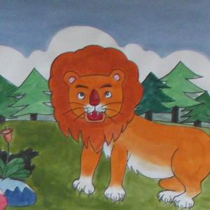 圆梦画室老师为少儿提高班演示的动物丙烯画作品。