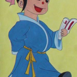 圆梦画室老师为少儿提高班学生分步骤演示的丙烯画卡通动漫,包括:县太爷,进京赶考的书生,拎包的小姑娘等。
