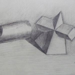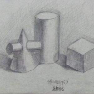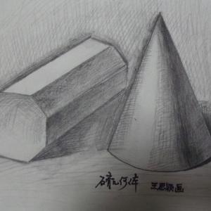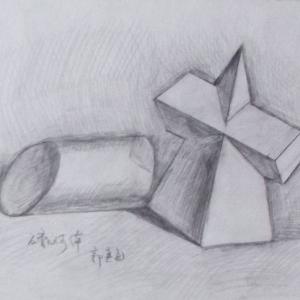 一部提高班的学生目前正在学习三个及四个石膏几何体的画法,这是第17周郭奕和曹潇同学画的石膏几何体作业。