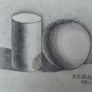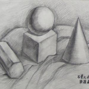 一部提高班的学生本学年第16周学习了三个石膏几何体的画法,这是孩子们完成的石膏几何体相关的课后作业。