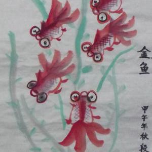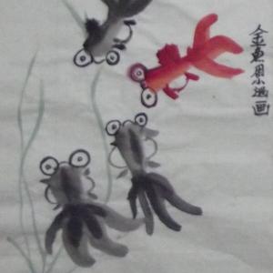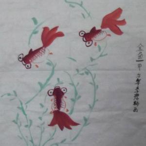 第4周,圆梦画室中级班的学生,学习了国画的理论知识,并进行了中国花鸟画的用笔和用墨训练,这是部分学生的国画水墨金鱼和红金鱼的课后作业展示。