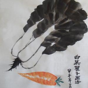圆梦画室少儿学国画(写意画)系列教程之十一——白菜和胡萝卜的画法。