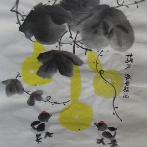 中级班已经学习了水墨金鱼、红金鱼、螃蟹、丝瓜、黄瓜、葫芦、葡萄及小鸡的国画画法,这是学生根据所学的内容,在13-14周上交的部分课后的国画作业。