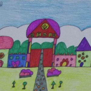 少儿学蜡笔画系列之四学校的画法