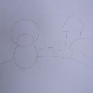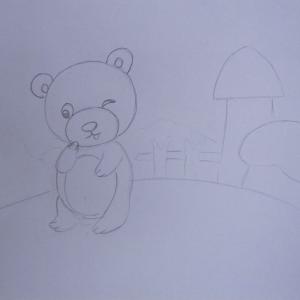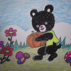 本篇教大家用蜡笔和彩笔画出一只憨态可掬的小熊和它的蘑菇形状的家,这是少儿学蜡笔画系列教程第三讲。