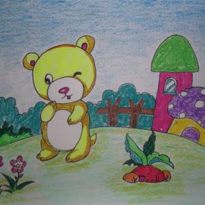 少儿学蜡笔画系列之三小熊的家画法