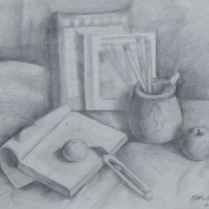 圆梦画室二部的部分学生在第20周创作完成了十二幅以陶罐、玻璃器皿、水果为主题的静物素描的作品,可以看出,孩子们已初步掌握构图、布局及调子的表现。