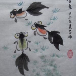 圆梦画室2014暑期少儿学国画(写意画)系列教程之四——水墨金鱼的画法。