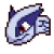 第四步骤,用大白云笔将淡墨调至笔根,中等墨调至笔肚,笔尖蘸浓墨。中锋转侧锋,由实到虚,三到四笔,撇出鱼尾,鱼尾与鱼肚稍远一些,露出尾根,浓墨点眼睛,流出高光。