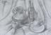 书本、笔筒、水果、小刀等静物组合素描 张江禹画