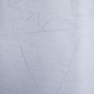 第五步骤,先用铅笔横着排出地面上的浅灰色调,再在上面画出一堆堆小草。近处画得高一些,远处画得低一些。近处画得深一点儿,远处排线浅一点。