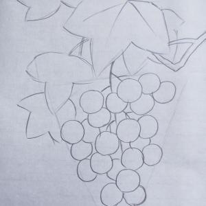 第一步骤,确定视平线的位置,小熊猫定在纸的右边大约两个半头高,皮球画在小熊猫的面前。