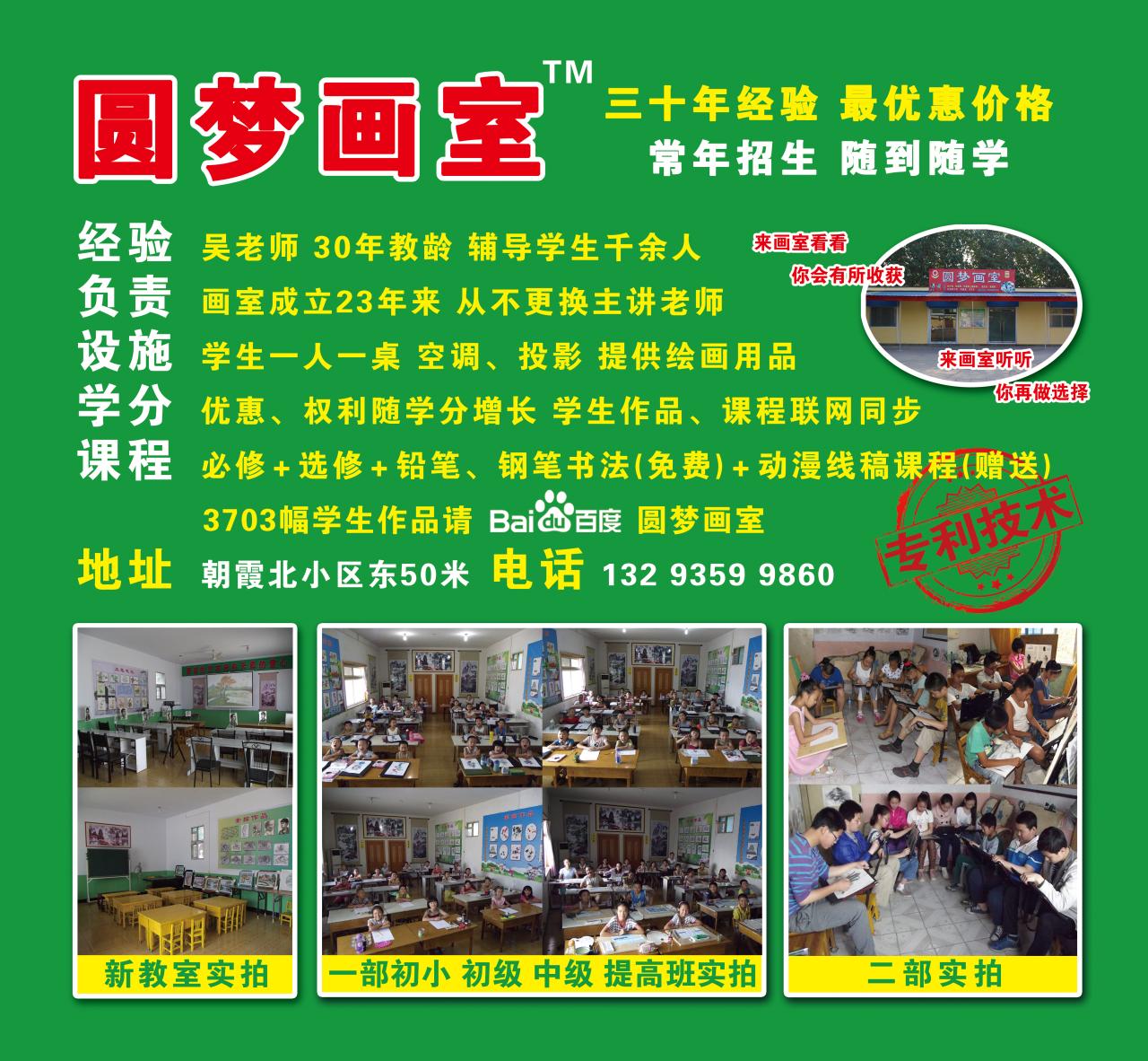 1992年成立至今,圆梦画室已培养学生达2000人次,现有学生130余人。